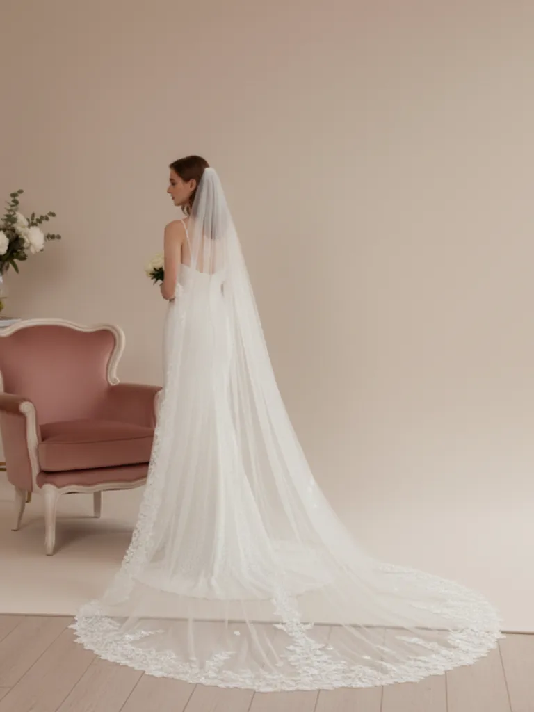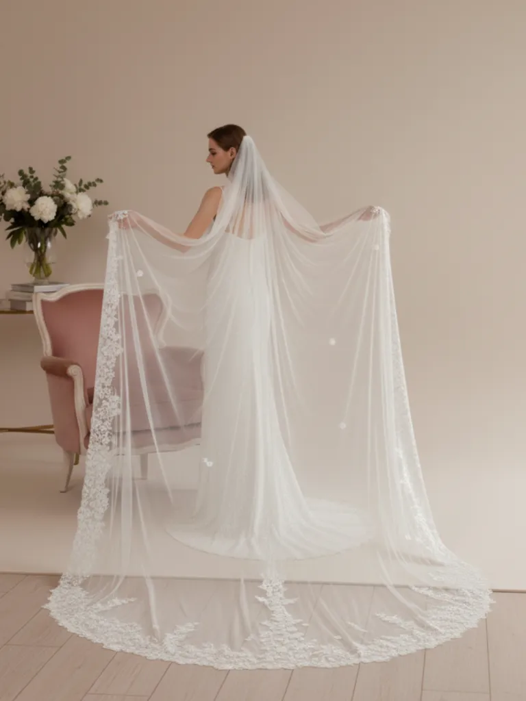 Cada uno de nuestros velos son piezas únicas, diseñadas para realzar la esencia romántica de tu look nupcial. Están confeccionados en tul suave, con bordados que enmarcan delicadamente la silueta y ayudan a realzar tu vestido haciéndolo enamorar a todos a tu alrededor. Su caída ligera y etérea lo convierte en el complemento perfecto para tu gran día.