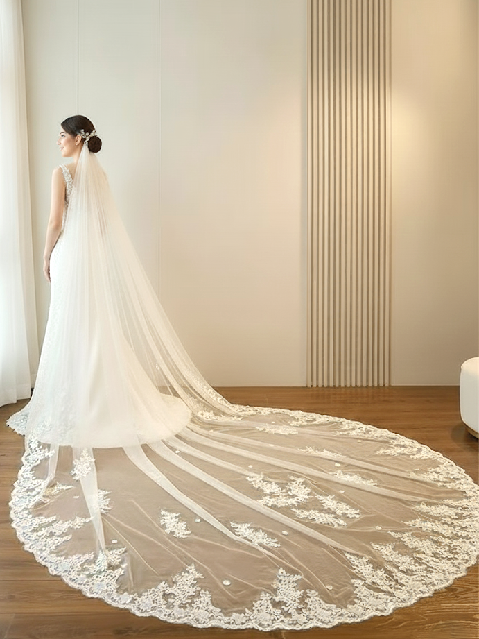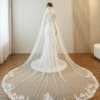 Velo de novia bordado en tul, delicadeza artesanal única.
