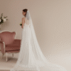 Cada uno de nuestros velos son piezas únicas, diseñadas para realzar la esencia romántica de tu look nupcial. Están confeccionados en tul suave, con bordados y flores 3d que enmarcan delicadamente la silueta y ayudan a realzar tu vestido haciéndolo destacar. Su caída ligera y etérea lo convierte en el complemento perfecto para tu gran día.