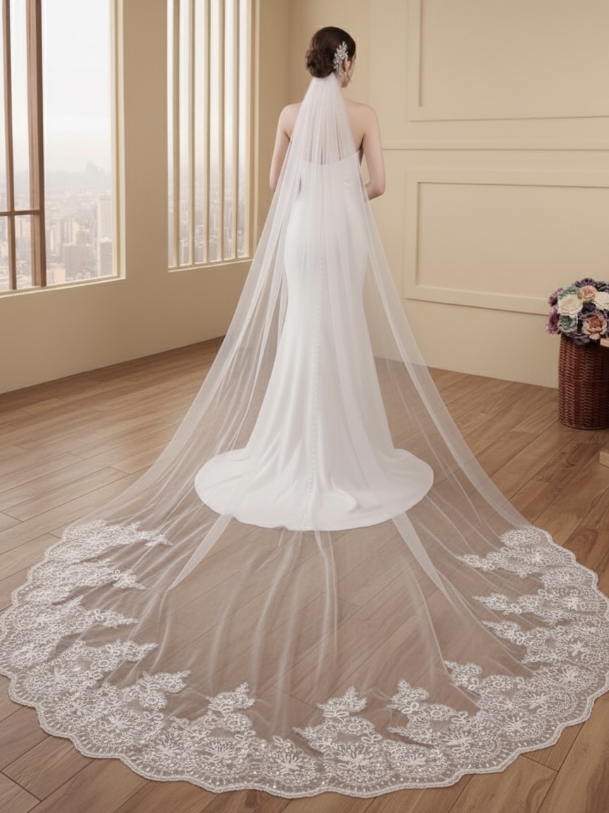 Cada uno de nuestros velos son piezas únicas, diseñadas para realzar la esencia romántica de tu look nupcial. Están confeccionados en tul suave, con bordados y lentejuelas que enmarcan delicadamente la silueta y ayudan a realzar tu vestido haciéndolo brillar. Su caída ligera y etérea lo convierte en el complemento perfecto para tu gran día.