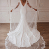 Cada uno de nuestros velos son piezas únicas, diseñadas para realzar la esencia romántica de tu look nupcial. Están confeccionados en tul suave, con bordados que enmarcan delicadamente la silueta y ayudan a realzar tu vestido. Su caída ligera y etérea lo convierte en el complemento perfecto para tu gran día.