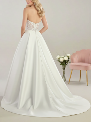 En MarF entendemos que cada novia es diferente, por eso ofrecemos una amplia colección de vestidos con distintos cortes, escotes y detalles únicos. ¿Prefieres mangas largas o un escote de barco? ¿Te encanta la espalda tatuaje o los diseños minimalistas? Aquí encontrarás el vestido perfecto para ti. Además, utilizamos tejidos de alta calidad como tul, gasa y mikado para garantizar que cada diseño sea elegante y sofisticado. Y si quieres personalizarlo, estamos aquí para hacer realidad cada detalle que imaginas.