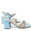 Sandalia confeccionada en combinación de cuero y tira de strass tornasol